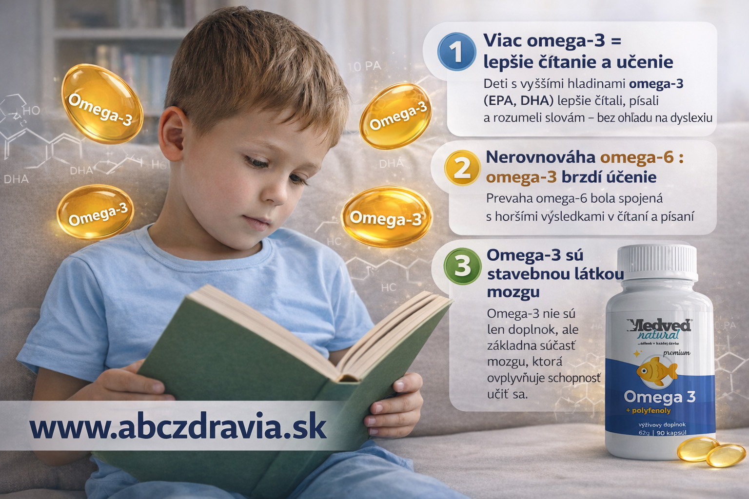 Omega-3 nie sú len obyčajný "doplnok", ale základná stavebná látka mozgu. Nerovnováha medzi omega-3 a omega-6 môže brzdiť učenie. Preto moderná veda odporúča, aby sa omega-3 zohľadňovali v prevencii a podpore detí s poruchami učenia.